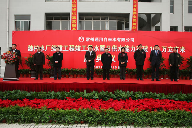 12月25日,备受关注的魏村水厂续建工程经过一年多的奋战,顺利竣工通水。市长王伟成、人大常委会副主任贾宝中、副市长朱晓敏、政协副主席顾森贤、市政府秘书长赵忠齐、威立雅中国区总裁粟浩及市委重点项目督查组、建设局、发改委、规划局、水利局、环保局、新北区政府、常州海关、常州海事处等单位的领导参加了竣工通水仪式。