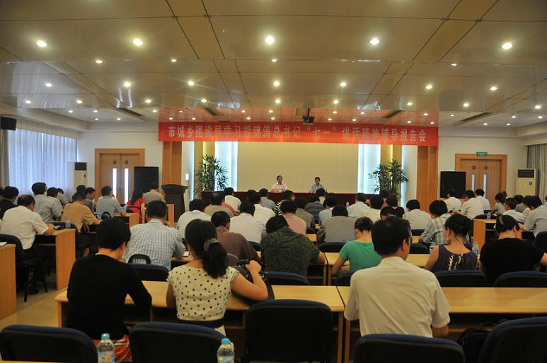 8月5日下午,常州市城乡建设局召开了学习胡锦涛总书记“七一”重要讲话精神辅导报告会。邀请全省建设系统马列理论专家、省住建厅副巡视员、机关党委副书记王有党作了专题辅导报告。市城乡建设局机关全体人员,局属单位全体领导,市地震局全体人员共150余人参加了报告会。