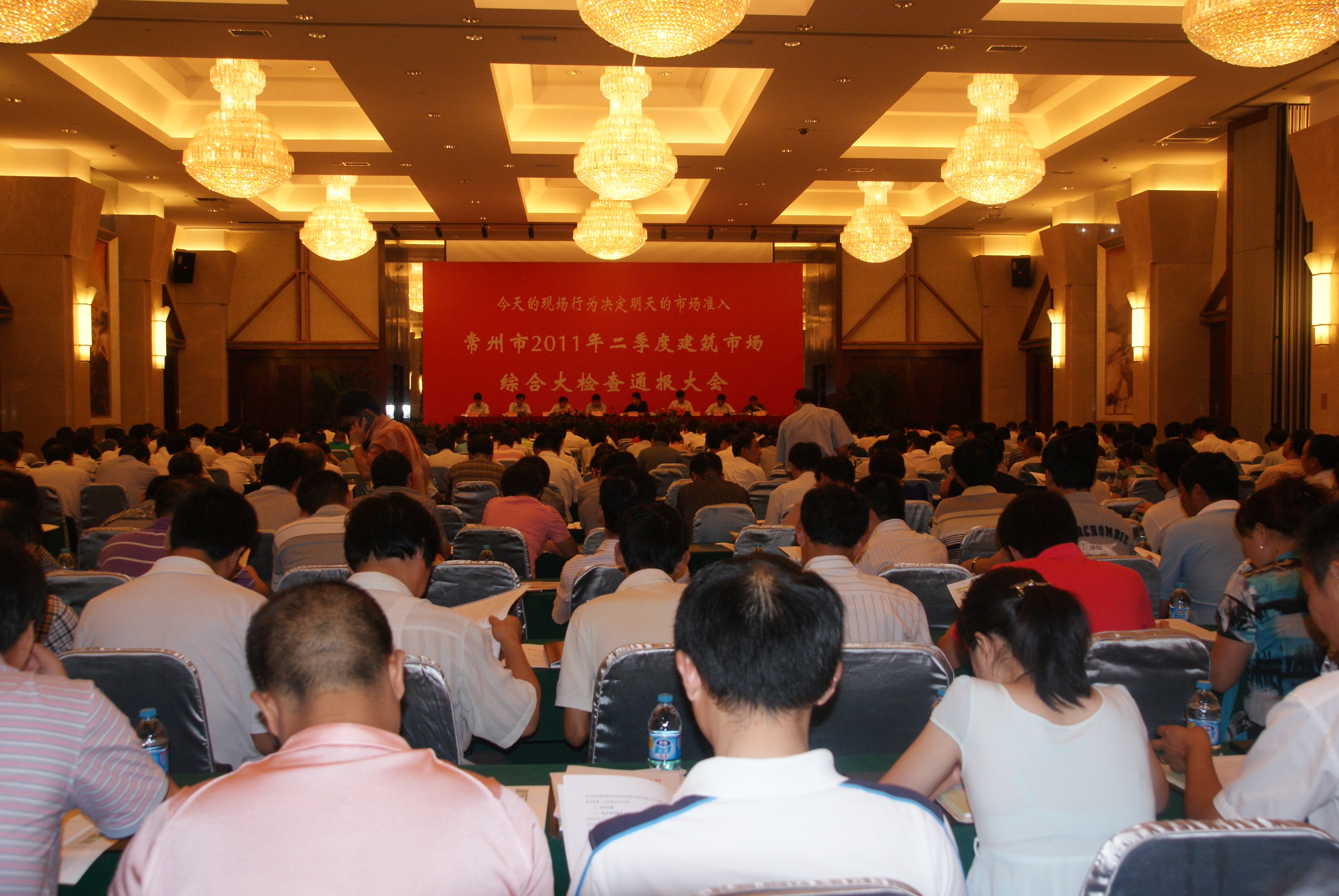 为进一步深化工程建设领域突出问题专项治理工作,加强市场和现场的“两场”联动,规范工程建设各方主体行为,促进诚信体系建设,不断提高工程质量和安全文明施工水平,今年6月中旬至7月上旬,我局与辖市区建设行政主管部门联动,对全市638项在建工程进行了建筑市场综合大检查,并于 会议通报了此次综合大检查在工程项目基本建设程序、工程实体质量,现场安全生产和文明施工情况以及建设监理行为、专业分包单位市场行为等方面的基本情况和存在问题,对项目、单位和个人分别作出了相应的处理意见,并要求存在问题的项目、单位和个人加强整改落实,并按时将整改落实情况反馈至相应监管部门。 冷和荣副局长详细阐述了“施工现场管理”与“建筑市场准入”的联动关系,并指出下一阶段我局将从工程招投标引入“信用分值”、控制工程造价等方面进一步规范建筑工程市场行为;采用新闻媒体曝光或移送司法机关等方法,加大对通报批评单位及违法、违纪项目的查处力度;利用现代通讯设备,开发使用监管人员、项目经理、总监、安全责任人员在岗定位考核系统。