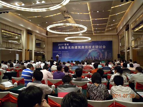 由常州市城乡建设局主办,常州市建筑行业协会、常州市勘察设计协会、常州市房地产协会协办的“2011常州太阳能光热建筑应用技术研讨会”于7月29日在常州金陵江南大饭店隆重召开。主办单位的相关领导及三家协会的成员单位近300人参加了此次盛会。