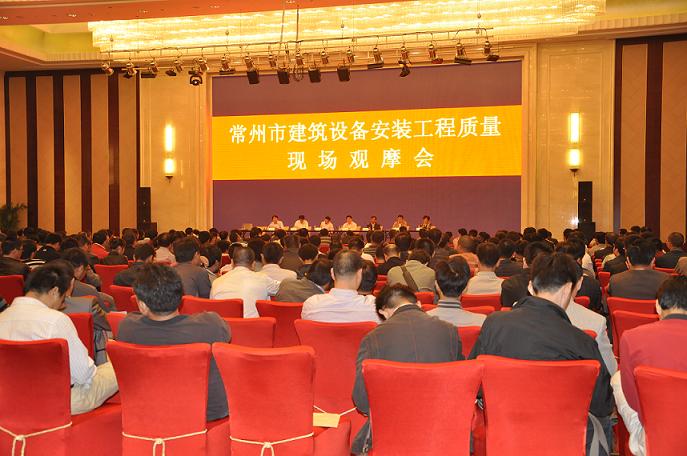 观摩会分成会议、观摩两部分。会上,常州工业设备安装公司就九洲花园大酒店安装工程施工、创优作了经验介绍,市质监站刘智璋高工针对我市开展的安装工程质量整治、提升活动作了发言,对存在问题、拟采取措施、活动目标进行了说明。省质监总站金孝权总工到会专门就工程质量的重要性、安装工程质量的重要性、切实抓好建筑节能工作等提出要求。市城乡建设局冷和荣副局长作重要讲话,他指出:各有关单位要以此次观摩会为契机,再掀安装工程质量提升新高潮,进一步促进整治工作的开展。按照务实创优、目标管理的指导思想,通过培训、观摩、督查等方法步骤,真正使全市的安装工程质量水平踏上一个新的台阶,努力在两年时间内跨入全省先进行列。