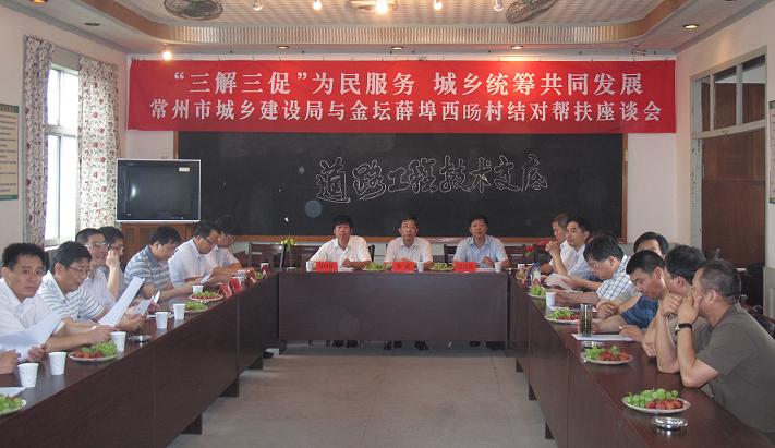 为进一步落实市委、市政府关于开展领导干部“三解三促”活动、“百千万”帮扶工程活动精神,6月26日,市城乡建设局党委书记李武、副书记、纪委书记吴全清等局领导及局各处室、局属有关单位负责人20余人,冒着大雨,来到金坛薛埠西旸村结对帮扶。他们踏着乡间的泥泞,为贫困家庭送上慰问金和慰问品。今年市城乡建设局将为西旸村办三件实事:一是为西旸村一条始建于上世纪70年代的主要通道进行整修,6月14日这条道路已经开工建设;二是为133户分散居住的农民家庭通上自来水,4月份通用自来水公司技术人员已经勘测了现场,并提出了引水方案;三是为年人均收入不到3500元的20位村民,进行结对帮扶。