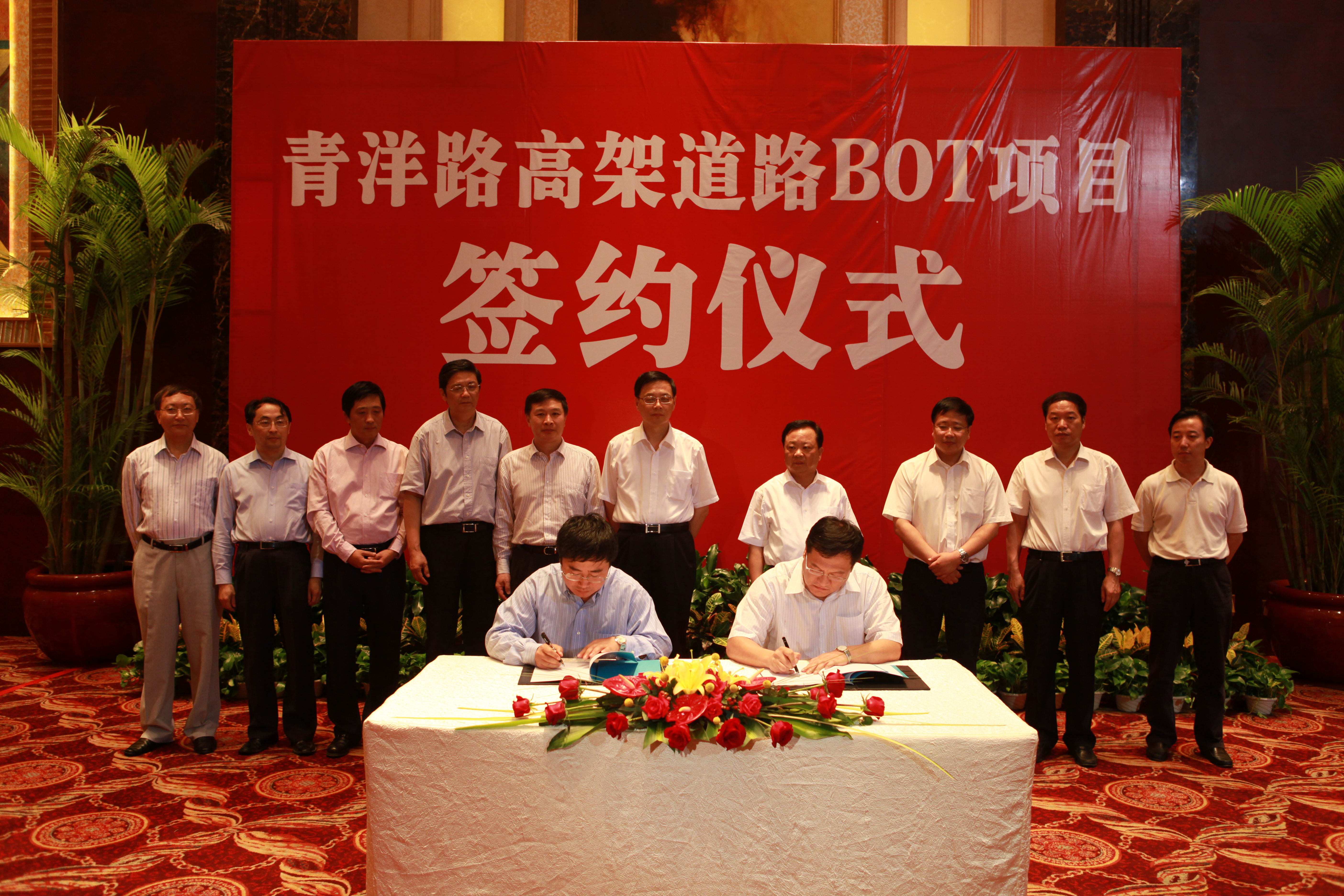 继高架道路一期工程成功合作后,沪常再度联手。昨天下午,常州市建设局与上海城建集团、上海国盛集团签订青洋路高架道路BOT特许运营合同。这标志着常州高架东半环——青洋路高架道路工程正式启动。