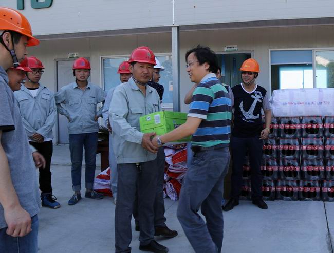 连日来,骄阳似火,高温持续飙升,市城乡建设局领导心系高温下作业的建设工地一线工人。7月29日上午,局党委书记蔡楚秋,党委副书记、副局长邹云龙带领局工会、建管办、安监站等部门,顶着炎炎烈日,走访了正在建设中的文化广场、花园中学、地铁聚湖路站、新乐花园、清溪人家和恽代英故居修缮工地施工现场,看望高温时节奋战在一线的建筑工人,并送去降温物资及防暑药品。