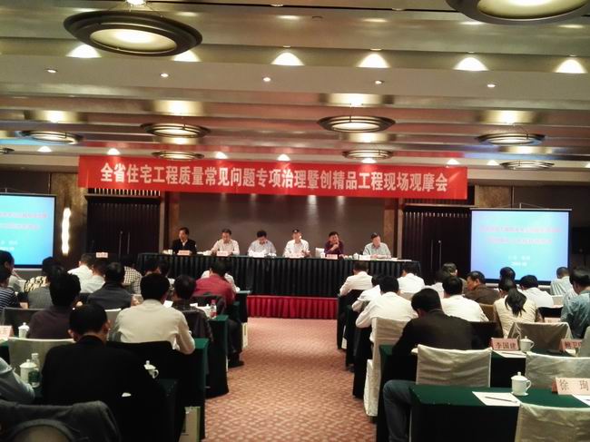 为推动全省住宅工程质量常见问题专项治理工作,鼓励创建精品工程,省住建厅于10月27日在我市组织召开了全省住宅工程质量常见问题专项治理暨创精程现品工场观摩会。省住建厅、省建工局分管领导、省住建厅质安处、省质量监督总站、13个省辖市的分管领导、建工处长、质监站长以及部分施工、监理单位负责人约170人参加了本次观摩会。