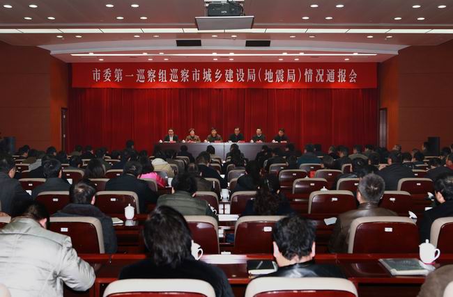 2016年2月25日,市委第一巡察组组长潘建中代表巡察组向市城乡建设局(地震局)进行了巡察情况反馈,市纪委副书记、市委巡视工作联络组成员兼办公室主任石伟东出席会议并讲话,局党委书记蔡楚秋代表局党委作表态发言。会议由市城乡建设局局长史政达主持。