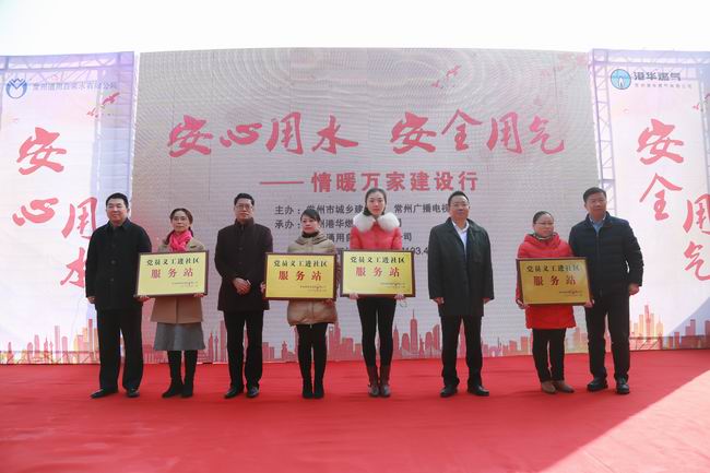 当前,我局正在加快推进自来水深度处理工艺改造和天然气利用三期等民生保障工程,为进一步提高我市供水供气服务质量,及时满足社会需求,活动现场自来水公司和港华燃气公司员工进行了防冻知识与安全用气的宣传讲解演示,介绍了轨道交通二号线供水管网改迁停水方案,并为市民现场进行水、气装备展示,向市民传授相关技巧,为市民排忧解难,受到了广大市民的热烈欢迎与一致好评。最后,市城乡建设局、市广播电视台领导给北环、勤业、锦阳花苑、花园二社区四家社区负责人授牌“党员义工进社区服务站”。