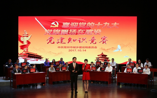 为认真学习贯彻好党的十八届三中、四中、五中、六中全会精神,进一步深化“两学一做”学习教育成效,更好地检验全局广大党员对党的基础理论、基本知识以及新颁发党内法规的学习掌握情况,促进全局广大党员不断强化党章党纪党规意识,把知党爱党各项要求内化于心、外化于行,常州市城乡建设局经过几个月的精心筹划、宣传动员和层层选拔,于10月14日在常州市大剧院举办了“喜迎党的十九大·党旗飘扬在建设”党建知识竞赛决赛活动。