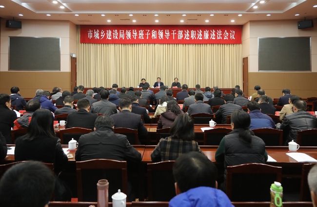 根据市落实党风廉政建设责任制领导小组《关于开展2017年度落实党风廉政建设责任制检查考核及党政领导班子成员述职述廉述法活动的通知》的要求,12月28日上午,市城乡建设局召开领导班子和领导干部述职述廉述法会议。市纪委第十四派驻纪检组组长蒋良华到会指导。会议由局党委书记、局长史政达同志主持,局领导班子全体成员、副调研员、地震局领导、局机关副科级以上干部、局属单位主要负责同志以及服务对象代表近90人参加会议。