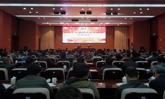 11月27日上午,市住房和城乡建设局举办学习贯彻党的十九届四中全会精神宣讲报告会,邀请市委宣讲团成员、市社科联主席朱明辉作专题宣讲报告。局党委副书记、副局长邹云龙主持会议,机关全体人员、局属单位副科级以上干部200余人参加学习。