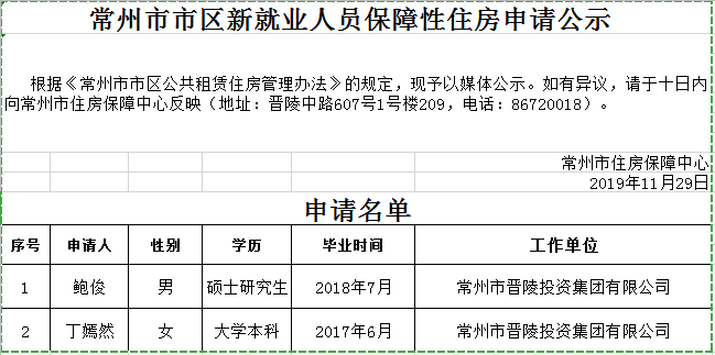 常州市市区新就业人员保障性住房申请公示