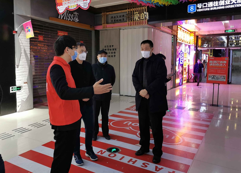 检查中,重点查看了工程现场的组织管理、人员与场所管控、防护物资储备和防控知识宣传情况。通过监督检查,督促指导现场管理单位进一步完善应急预案,落实人员防控知识宣传,强化主要责任人是现场传染病防控管理第一责任人观念;规范合理设置防控处置流程和现场测温点,全面做好经营商户的摸排和防疫物资储备;加强现场的环境消杀和公共通道的通风消毒,全面落实好各项疫情防控措施。