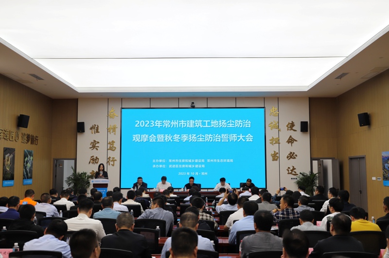为进一步统一思想,认真履行建筑施工扬尘防治监管职责,全力做好秋冬季建筑工地空气质量提质增优的“期末大考”,10月27日,常州市建筑工地扬尘防治观摩会暨秋冬季扬尘防治誓师大会在江苏理工学院新建工程项目正式召开,省生态环境厅驻常州监察专员杨宗栋,市大气办副主任、生态环境局副局长堵小东,澳门新葡京娱乐城副局长孙君出席会议并讲话,各辖市(区)澳门新葡京娱乐城、生态环境局分管领导,监督机构负责人,部分镇(街道)负责同志,及建筑企业代表等近150人参加会议。