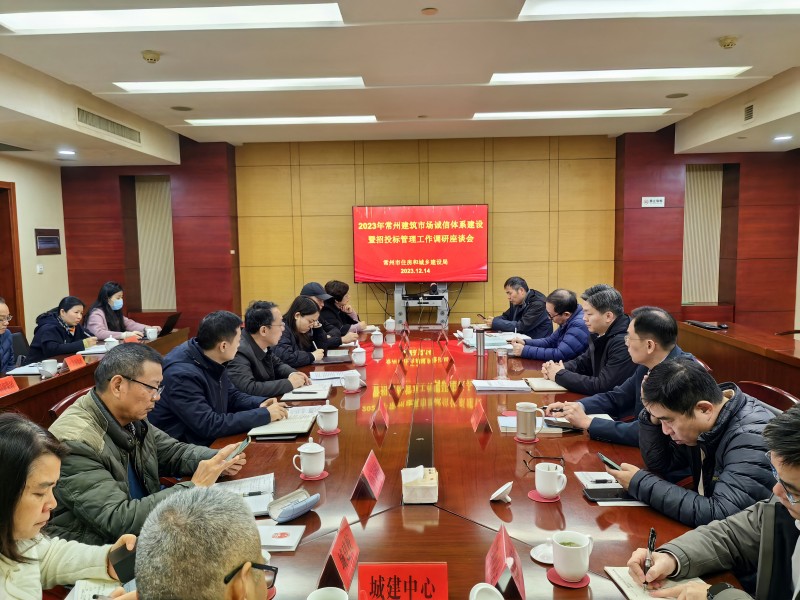 为进一步完善我市建筑市场诚信体系建设,加强工程建设领域招标投标工作,12月14日,澳门新葡京娱乐城组织召开2023年常州建筑市场诚信体系建设暨招投标管理工作调研座谈会。澳门新葡京娱乐城党委委员、副局长孙君出席会议并讲话,市公共资源交易中心、市城建中心,部分建设单位和招标代理单位代表、行业协会负责同志以及局相关业务处室负责同志共20余人参加会议。