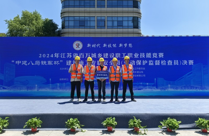 为贯彻落实习近平总书记关于技能人才工作和职业技能竞赛工作的重要指示批示精神,进一步提高建筑业安全生产水平,近日,由江苏省住房和城乡建设厅、江苏省总工会、江苏省教育厅主办,江苏省建设工会工作委员会、徐州市住房和城乡建设局、中建八局三公司承办的江苏省百万城乡建设职工职业技能竞赛“中建八局铁军杯”建筑施工专职安全员(劳动保护监督检查员)决赛在徐州顺利举行。