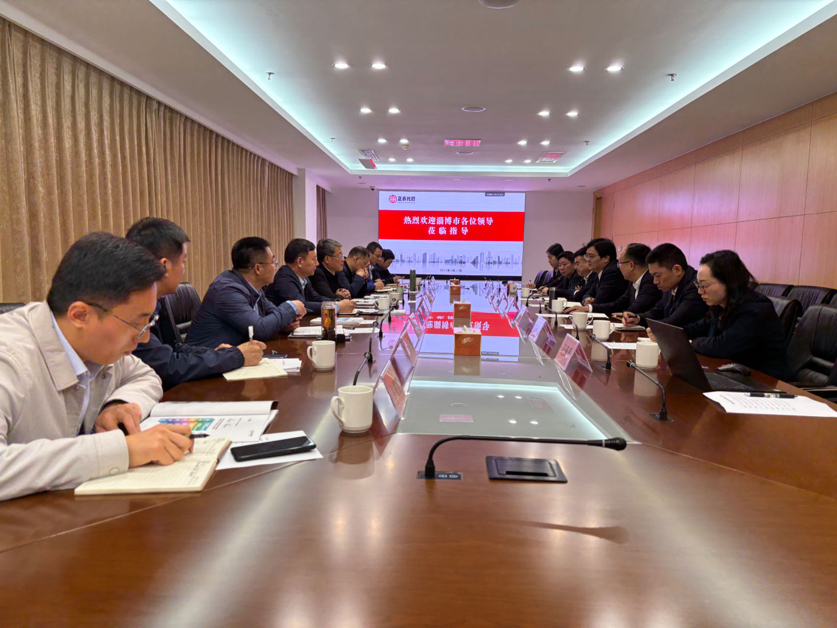 4月17日,淄博澳门新葡京娱乐城一行来常调研学习商品房预算资金第三方托管经验做法以及房地产项目风险防控机制,并参观了部分高品质住宅项目。正泰公司相关负责人陪同。