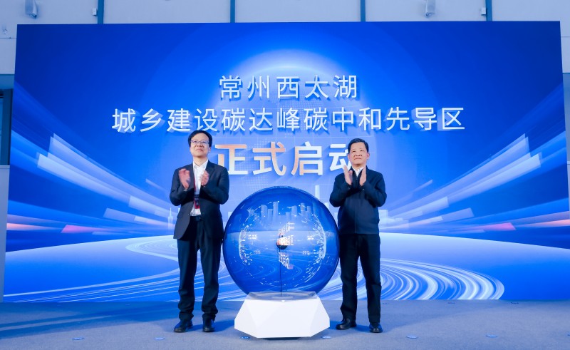 4月2日,在2025江苏绿色低碳建筑国际博览会“城乡建设碳达峰碳中和先导区”推介发布会现场,省住建厅总工程师路宏伟和常州市人民政府副市长狄志强共同按下启动球,标志着常州西太湖城乡建设碳达峰碳中和先导区正式启动。