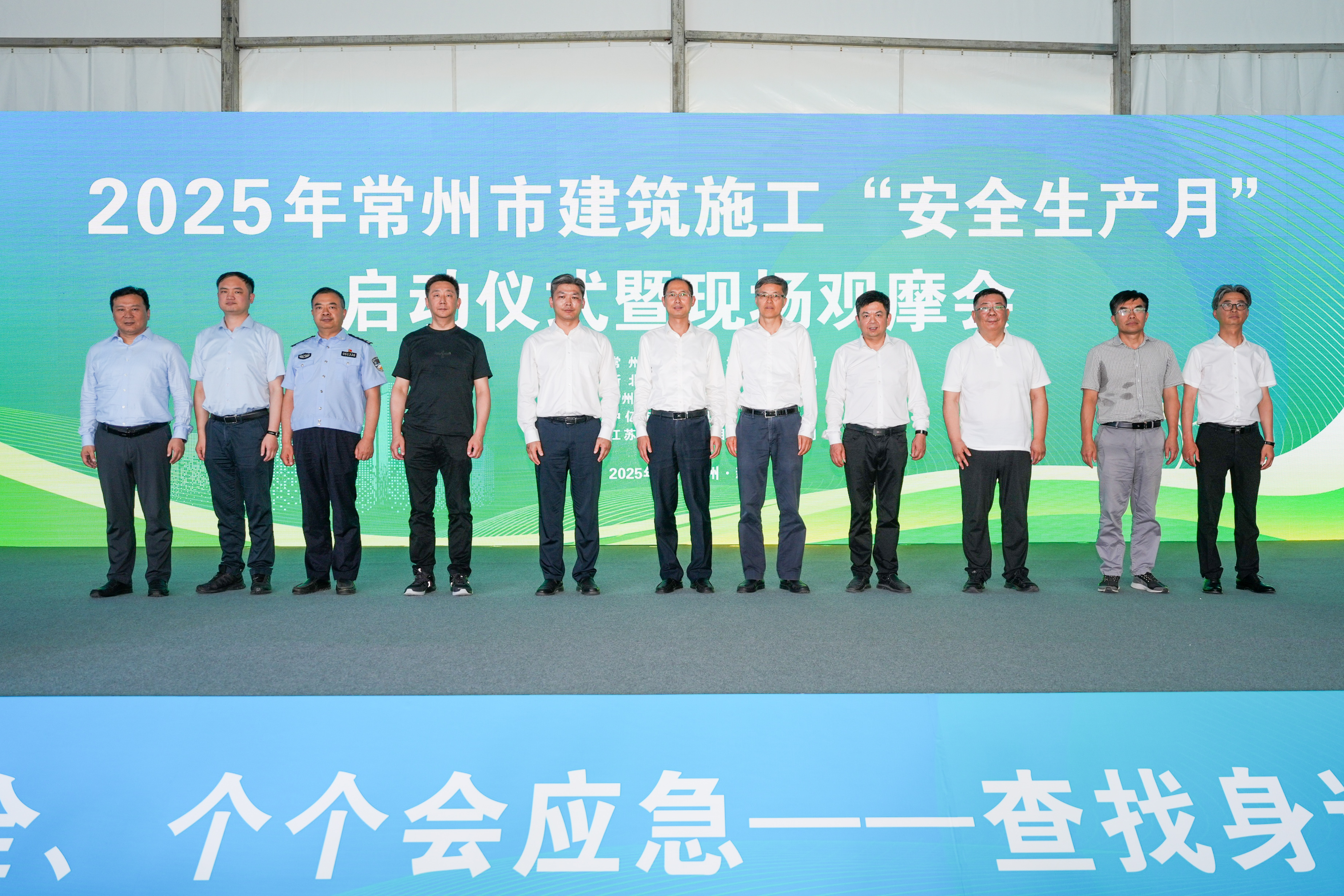 启动仪式上,新北区副区长孙君代表新北区政府致辞,建设、施工、保险企业代表先后进行了交流发言,就绿色及智能建造与安全生产的融合实践、风控服务等工作作详细汇报,施工人员代表宣读《安全生产倡议书》,随后,彭峻局长作了动员讲话,他指出安全生产关系到千家万户的幸福,也是建筑工地的头等大事。近年来,全市建筑施工领域安全生产形势保持稳定,成效的取得离不开广大建设者的不懈努力,但安全生产工作任重道远。要认清形势,时刻紧绷安全之弦。企业法人要当好企业安全生产“带头人”,安全员要当好安全生产“吹哨人”,一线工人要争做安全生产“明白人”,住建部门要当好安全生产“护航员”;要紧盯重点,持续抓牢关键环节。以安全生产治本攻坚三年行动为统揽,紧扣重点环节,全力提质效、查漏洞、补短板,真正实现治本攻坚、强基固本;要精心组织,全力营造安全氛围。按照“安全生产月”活动部署,扎实开展各项活动,做到接地气、有声势、见实效。最后,与会领导共同启动我市建筑施工“安全生产月”活动。