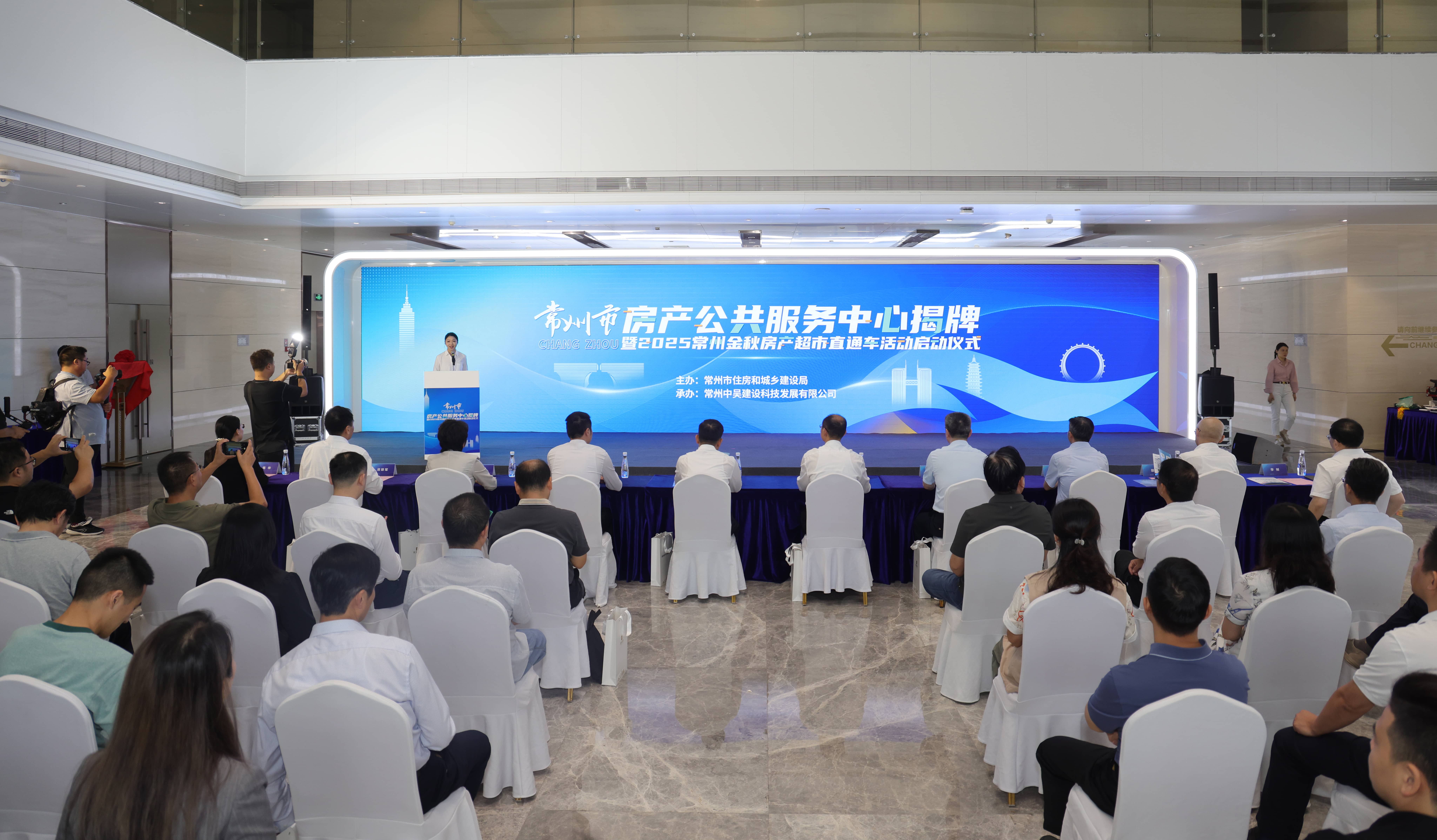 9月30日上午,常州市房产公共服务中心(便民窗口)揭牌暨2025常州金秋房产超市直通车活动启动仪式在文化广场龙城金谷一楼隆重举行。常州市人民政府副市长狄志强、副秘书长刘锁龙、市住房和城乡建设局局长彭峻等领导出席,澳门新葡京娱乐城、发改委、自然资源和规划局、数据局、税务局、公积金中心、不动产登记交易中心等相关部门负责人,以及行业协会、房企、中介经纪机构等代表共同参与。